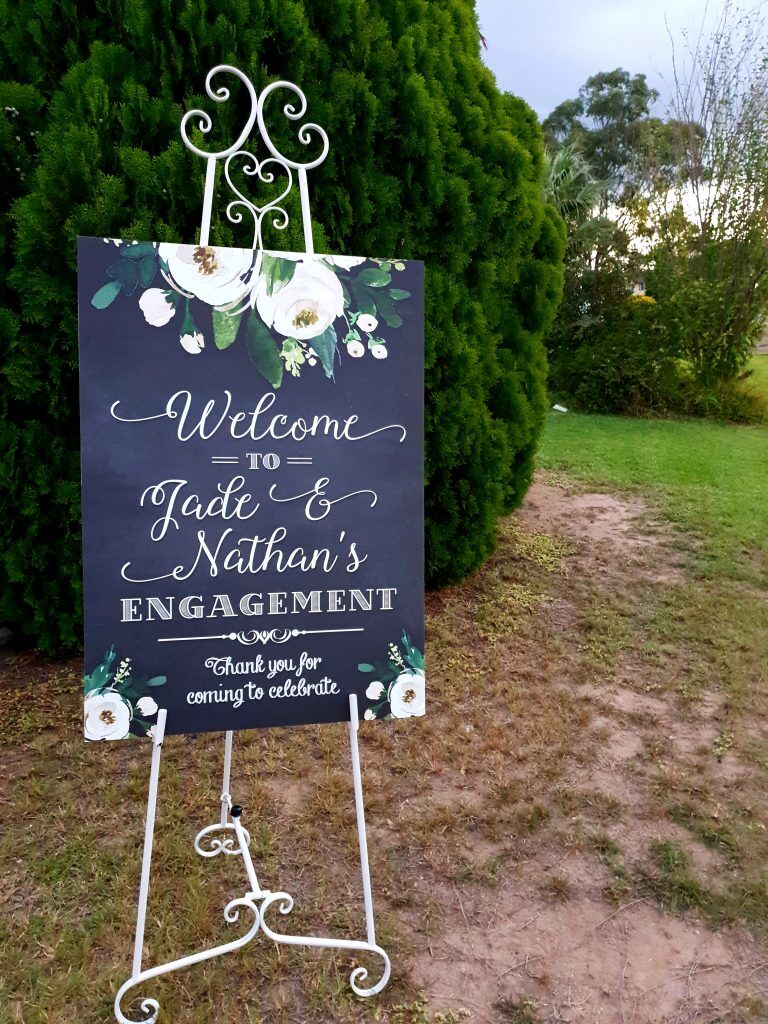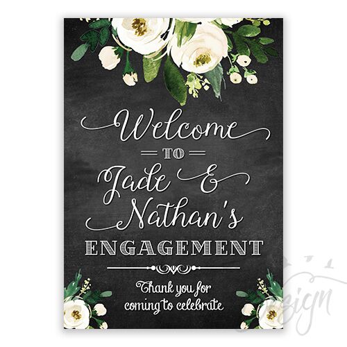 Vintage Chalkboard Look Welcome Sign has a rustic chalkboard look with white florals and custom typography. These A1 sized sign boards sit nicely on an easel and are printed on high quality matte vinyl with a corflute board backing.